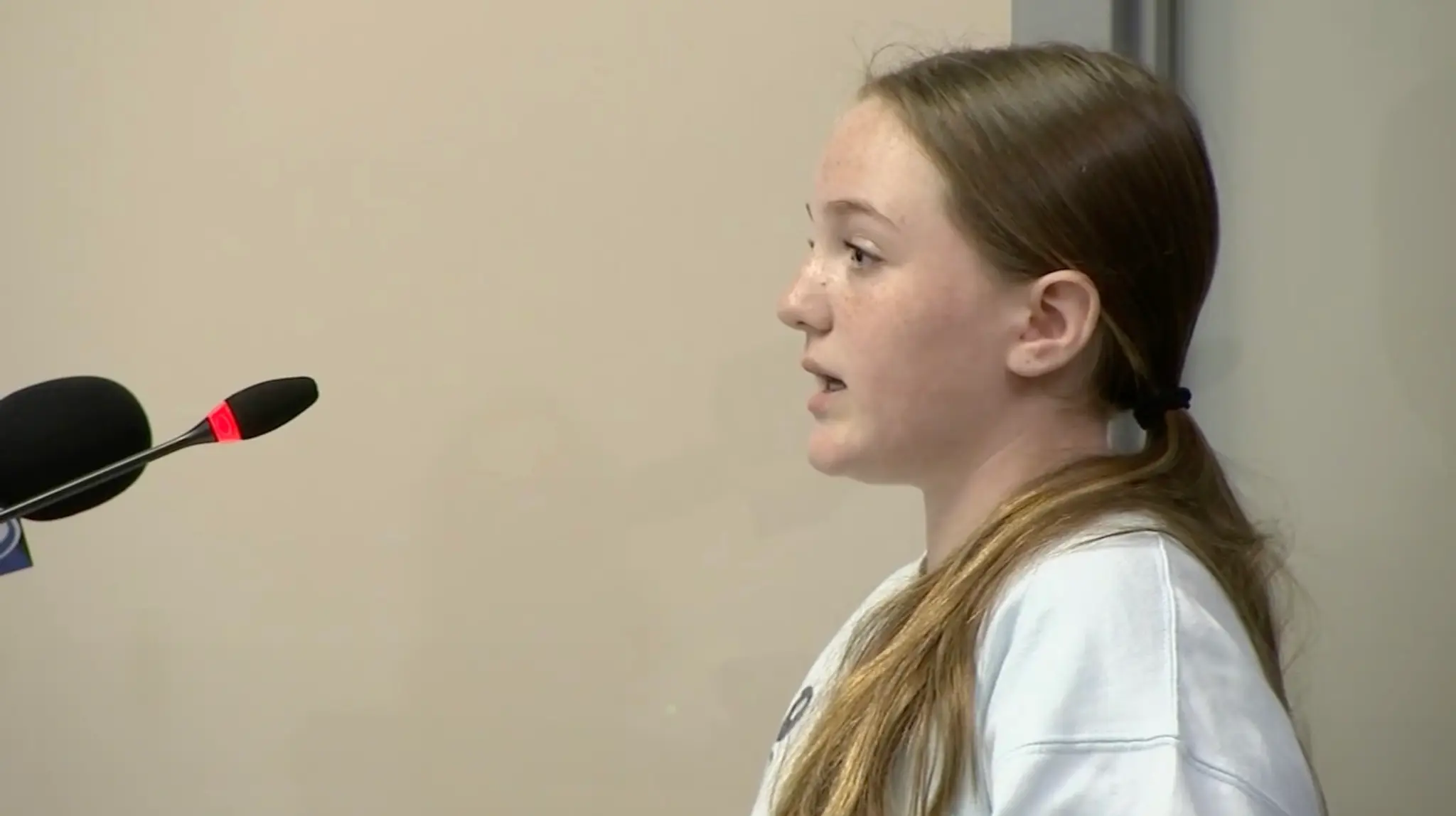 “I just hear all this screaming and everybody running. All of sudden you just hear these terrible loud bangs of the Stanley bouncing off her head,” Emily recounted at a school board meeting.