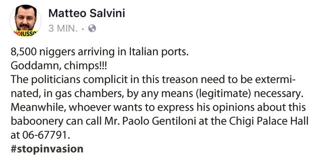 So, even after the Italian government has implemented a solution that benefits everyone, this ungrateful dago still feels the need to speak out against it. He doesn’t even explain why unlimited Africans is bad for Italy – he just attacks their race like a typical bigot.