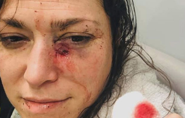 “He knocked me down, pulling my hair, kicking,” she recalled.