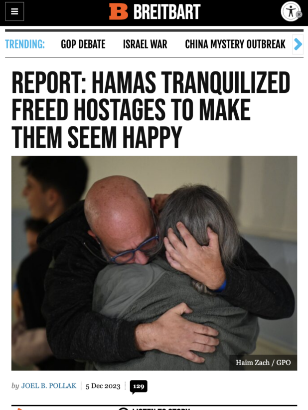 Meanwhile, the Breitbart kikes are explaining why the hostages, when released, all seemed totally fine by claiming, without evidence and without even a witness, that the hostages were drugged with tranquilizers before the release so they looked calm.