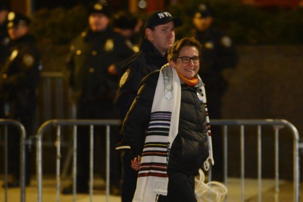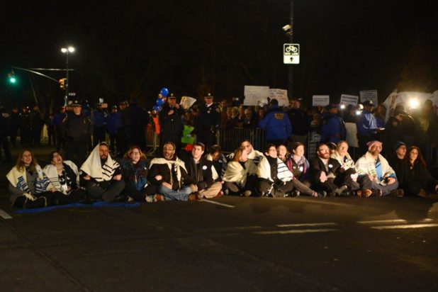 Nineteen rabbis were cuffed Monday night outside a Trump hotel near Columbus Circle while protesting the President’s ban on travelers from seven Muslim-majority nations, police and activists said.