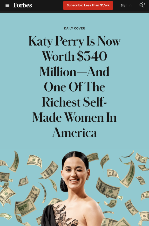 This means that women who have their own money – or at least more money than you have – should generally be off the table. Women are wired to get money from men, and it is a new thing to have women with hundreds of millions of dollars like Katy Perry has.