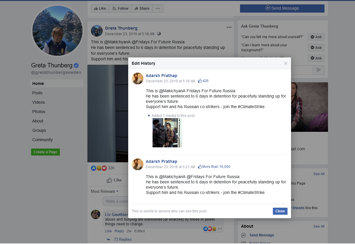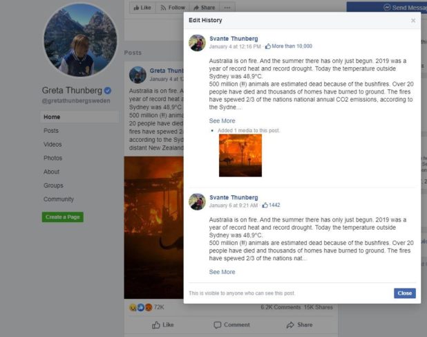 Look, proof of her father editing the official Greta Thunberg page: