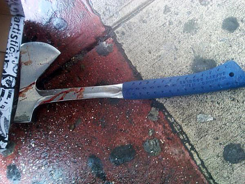 The bloody hatchet used in Thompson’s attack on police officers. (NYPD)