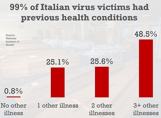 99 per cent of coronavirus deaths in Italy are patients with existing medical problems, a study by the country’s health service has found.