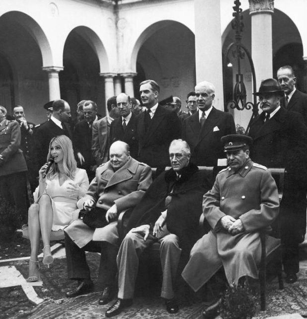 Ivanka is a completely dyed-in-the-wool libshit who believes everything that the people who elected her father absolutely hate. No one voted for Ivanka, and yet there she is, talking to world leaders as if she’s an equal (probably because she’s Trump’s senior handler) and talking about getting more Captain Marvels into the military-industrial complex.