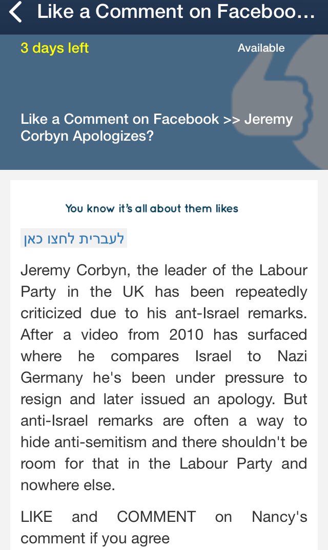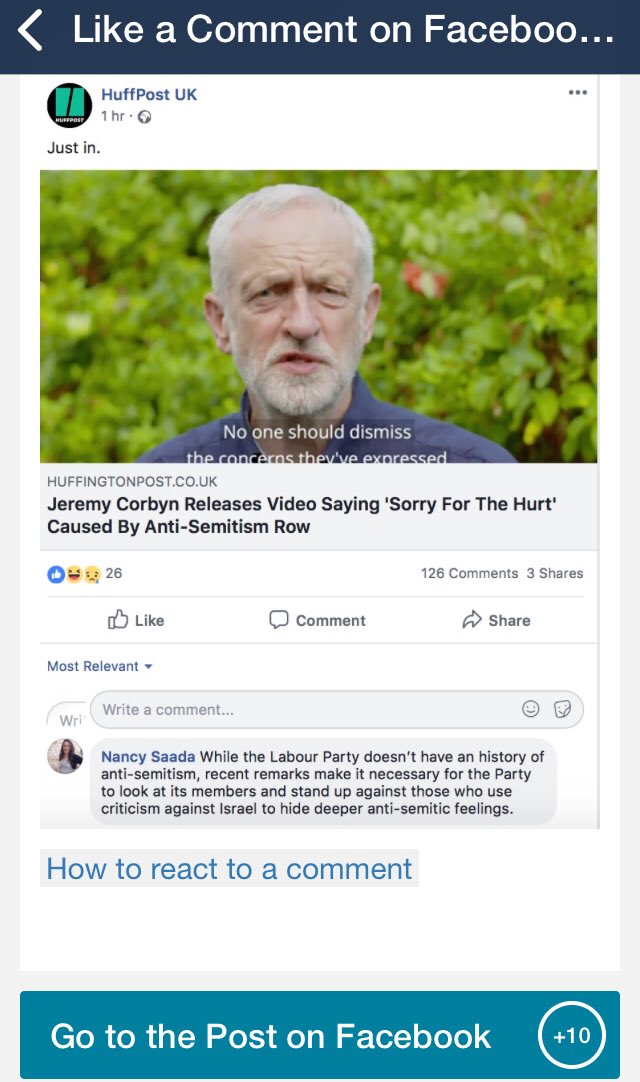 Here, for example, activists are urged to like a specific comment left beneath a Huffington Post article on the anti-Semitism controversy within the British Labour party.