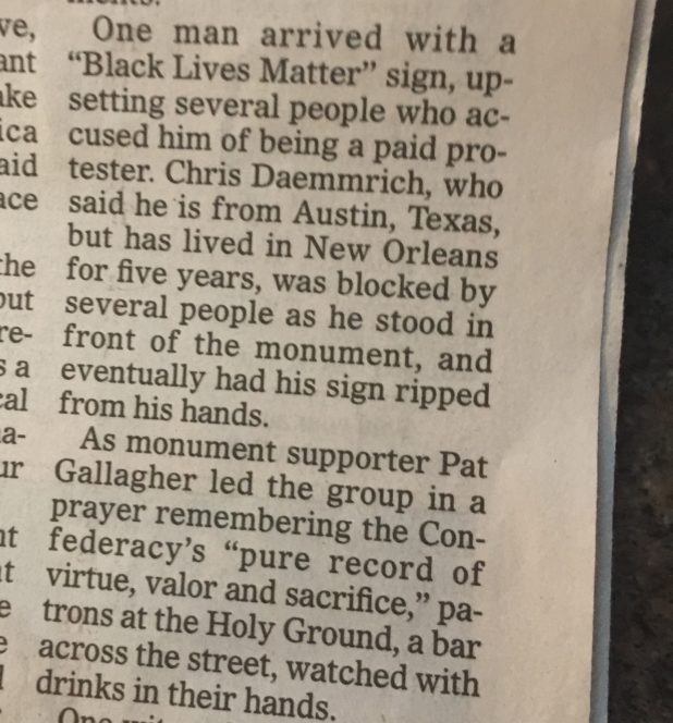 On Tuesday, one monument supporter after being acosted, beat the shit out of an Antifa type in front of the cops (who were Black). A few Nationalists showed up wearing camouflage fatigues with their faces covered like Antifa (wearing masks is illegal in Louisiana). A White Antifa guy got in one of their faces and was told that if he touched him again, he’d knock him the fuck out. The Antifa fag tested him and got knocked out cold for a good two minutes. A rabble rousing kike, who admitted he was a gay Jew called the cops, but when the cops arrived, they almost arrested the Antifa fag. After that, the Jew left. Good times!