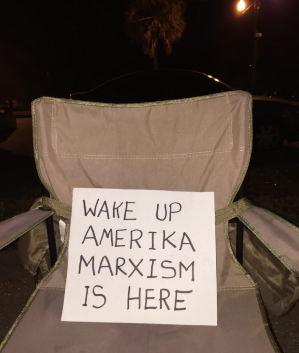 Though there have been several fights ending in Antifa idiots getting beaten down, most of the opposition was disorganized. Saturday night this changed, when degenerate sluts and a hand full of idiots (and even a Korean born Antifa) showed up with a huge banner reading “Take Them All Down” on three tall PVC poles. The banner was tall enough to block the flag supporters from being seen by people riding the street cars and driving by on their way to JazzFest, a yearly local music event. Some of our guys drove their trucks behind the banner and stood on the roofs with Confederate flags over the banner. One legit Antifa showed up with one of their flags dressed like a fashion skinhead from the 90’s with two obviously gay “bodyguards.” Tensions were high and the only reason a full riot didn’t break out was due to many cucked conservative types begging everyone to tone it down and claiming they had inside info that the police were waiting around the corner for a fight so they could arrest everyone.