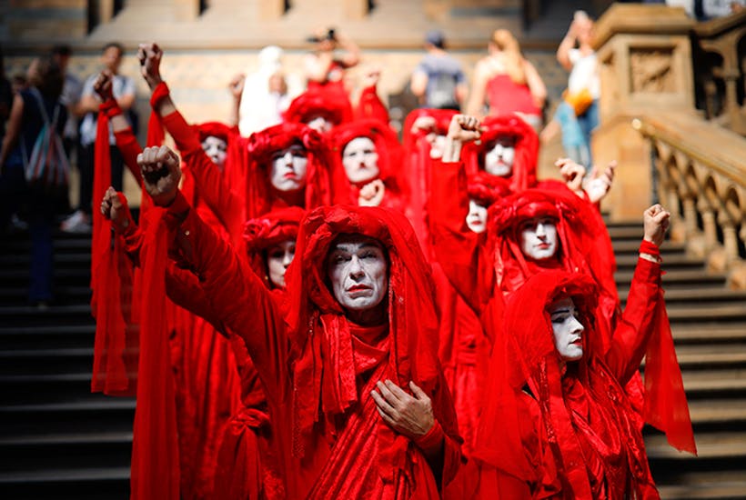 Mysterious “red dress” women (some of whom appeared to be transsexuals) have appeared at “Extinction Rebellion” global warming events in Israel.