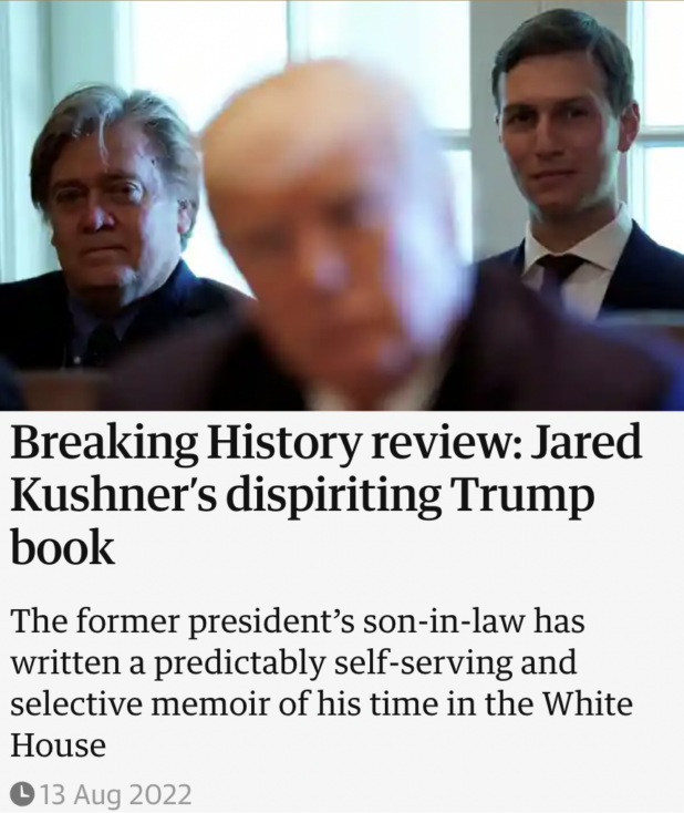 Then comes Breaking History, Kushner’s White House memoir. It sits at the intersection of spin, absolution and self-aggrandizement.