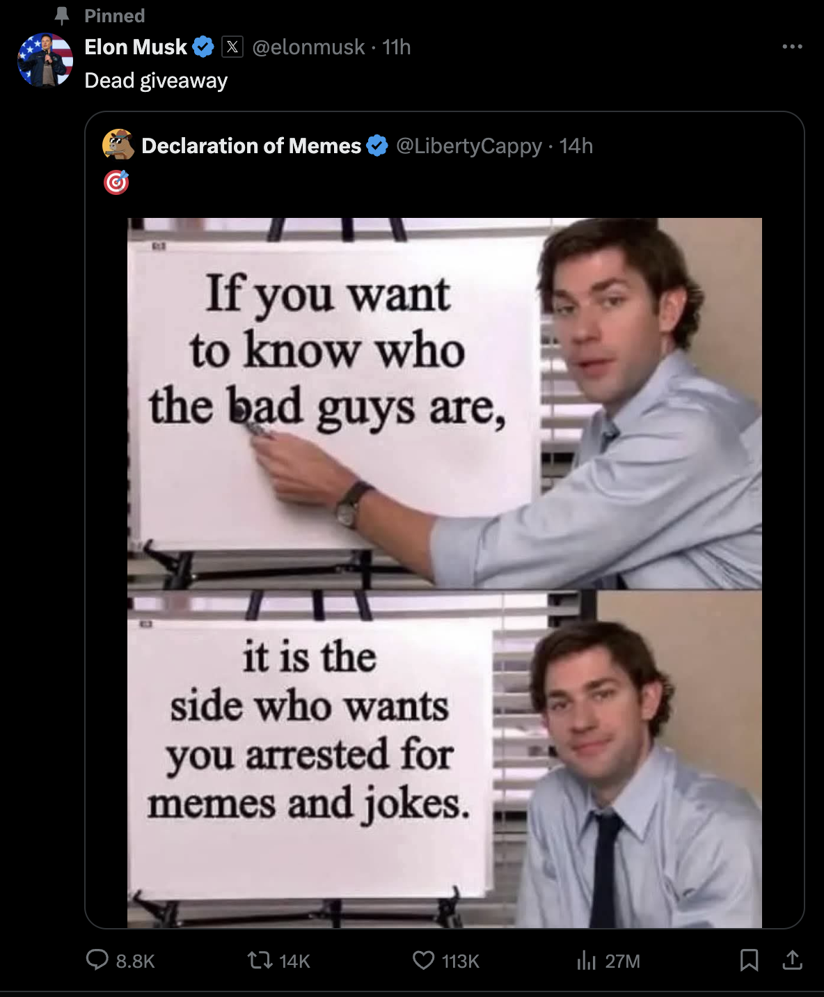 Elon isn’t satisfied shitting on the gene pool, he has to shit up the tubes with unfunnyness.