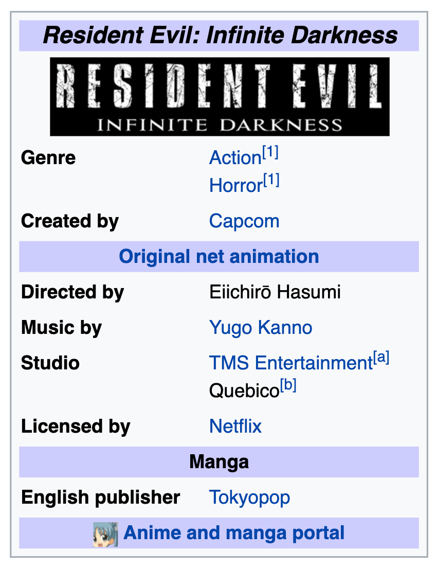The first of Netflix’ new series is a computer animated cartoon, which looks like the cinematics from the games. It is entitled “Resident Evil: Infinite Darkness.” There is already a trailer out for it.