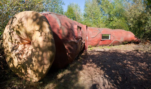 There is even a bed, a shower and central heating and guests can stay the night at the exhibit at the Verbeke Sculpture Park.