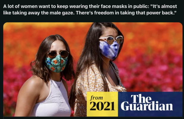It is like when the coronavirus masking phenomenon led the Guardian to promote the niqab.