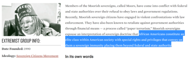 What about the “Moorish Sovereign Citizens”? Who exactly are they? Affiliates of the KKK, perhaps?