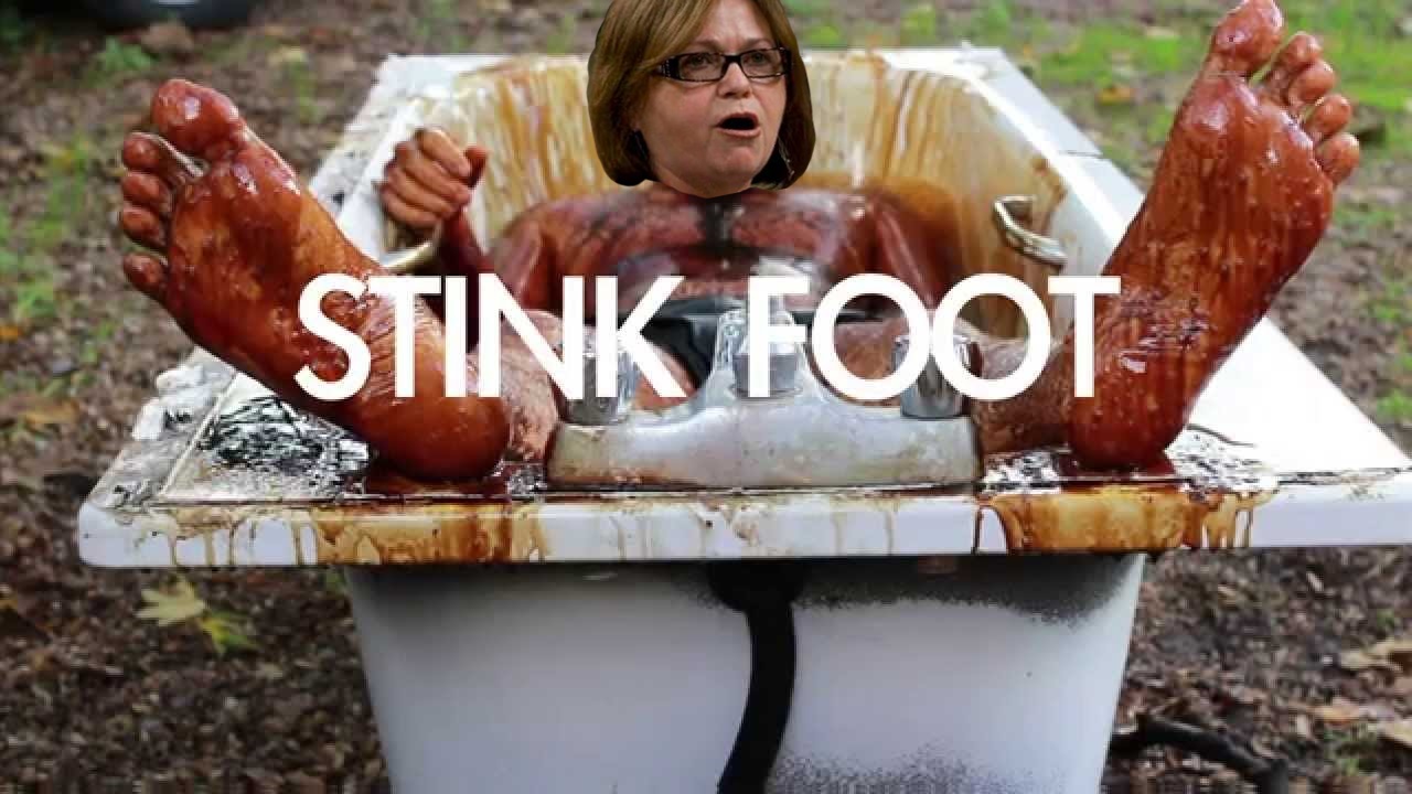 Judy got the nickname Stink Foot after rumors of her being sighted, usually right after a full moon, running around in bare feet emitting an odor so strong it knocked grown men out cold and gave a donkey a bloody nose. Above is an alleged picture of one such incident. Absolutely disgusting. This photo is illegal in the mails of the open air Gulag known as Canada, but here in the US we have freedom of speech, and will keep it until the last breath escapes our cold, dead lungs.