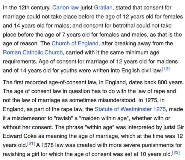 I’m sick of talking about this “pedo” bullshit. I don’t want to post that screenshot from Wikipedia. I don’t want to change the age of consent. I think 16 or 18 is fine. This is just something I do not want to talk about. I’m not going around saying shit that implies I want legal rights to have sex with underage girls. I’m just not going to be bullied by these dumb whores and disgusting male feminist welps. That is one of the top things that is not happening.