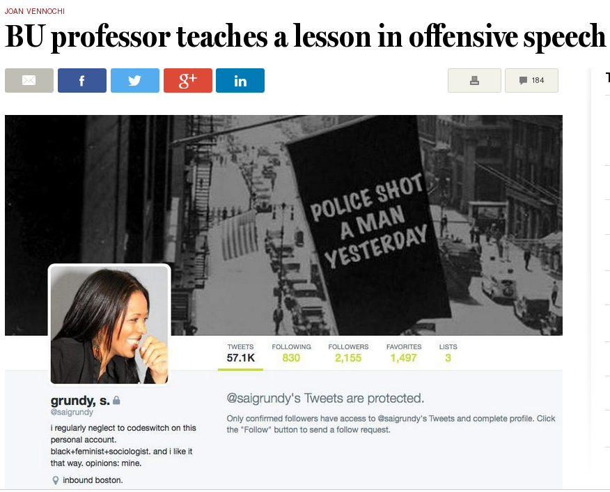 Exactly. But the author, Joan Vennochi, totally forgets to mention that not only would the White professor be instantly fired, Blacks would chimp-out and burn BU to the ground to get “muh justice.”
