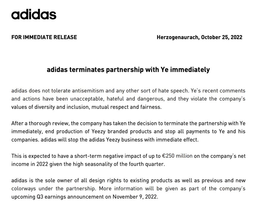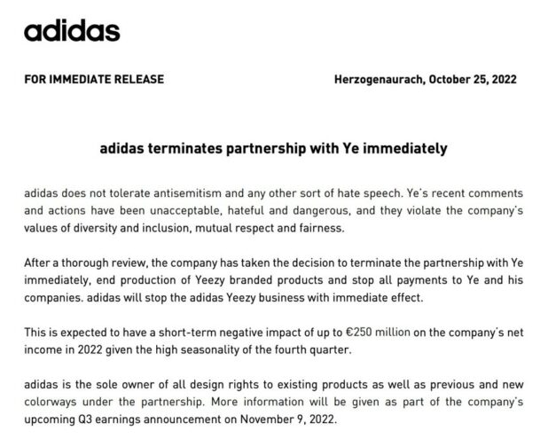 It’s going to cost them billions of dollars, but Adidas is bending the knee to the Christ-murdering Jew monsters and dropping Ye from the company for stating publicly that Jewish domination of everything is sort of a problem.