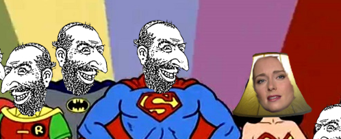Banded together from remote galaxies are two of the most sinister villains of all time, The Legion of Lulz, dedicated to a single objective: to make America great again. Only one group dares to challenge this anti-Semitic threat: The Super-Friendly Kikes! The Jewstice League of Jewmerica versus The Legion of Lulz! This is the Challenge of the Super-Friendly Kikes!