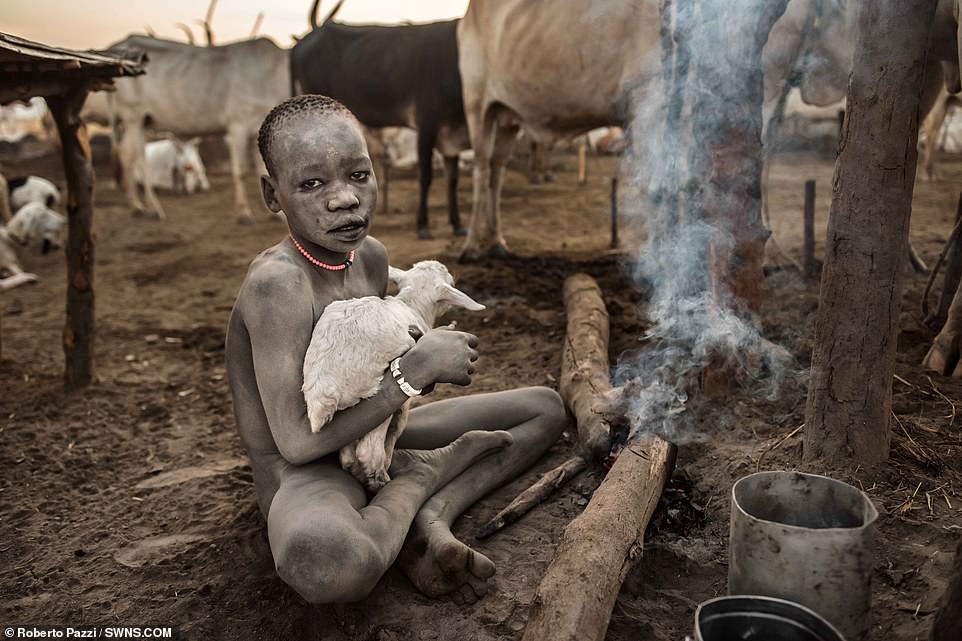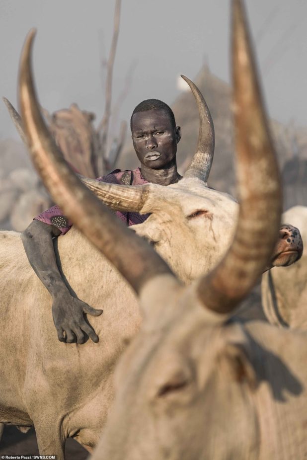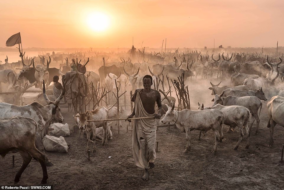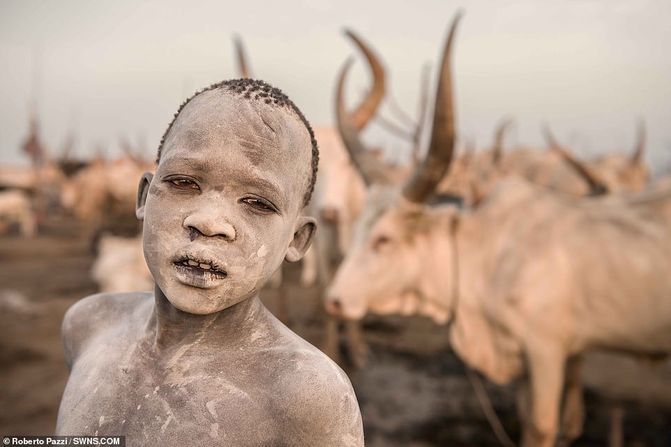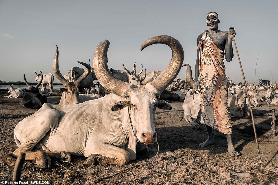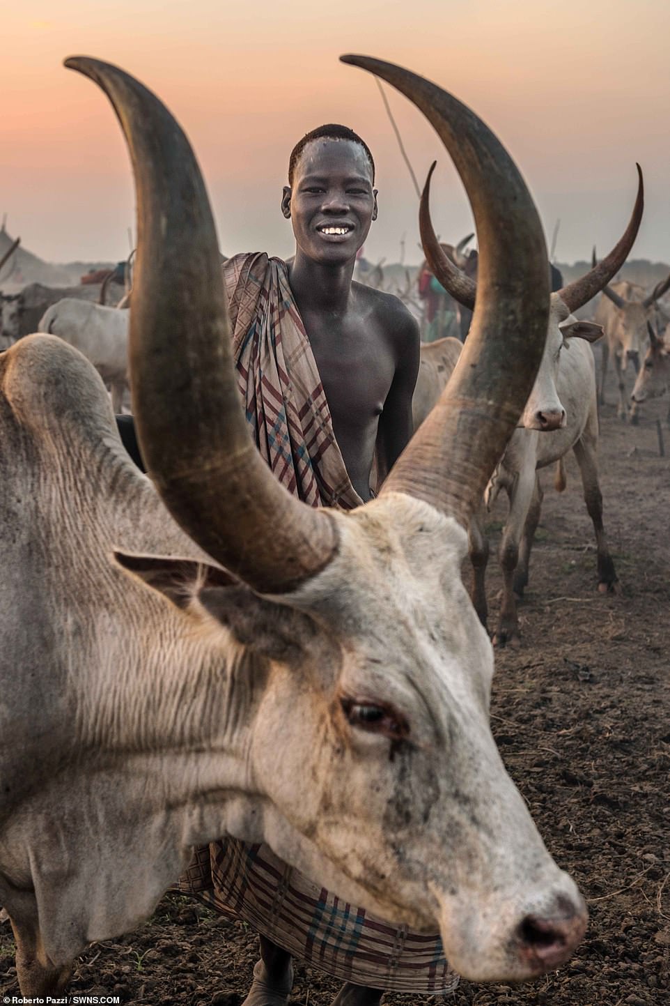 According to photographer Roberto Pazzi, 46, the tribe has a strong connection with animals, and each member has an estimated 10-12 cows.