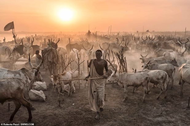 These incredible images capture the South Sudanese Mundari tribe which worships cows as equals and whose culture centres around cattle and cattle-herding.