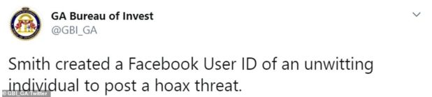 The Georgia Bureau of Investigation on Sunday said state police arrested Rashawn Smith and charged him with dissemination of information relating to terroristic acts.