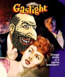 Gaslighting – The practice of brainwashing or convincing a mentally healthy individual that they are going insane or that their understanding of reality is mistaken or false. The term “Gaslighting” is based on the 1944 MGM movie “Gaslight”.