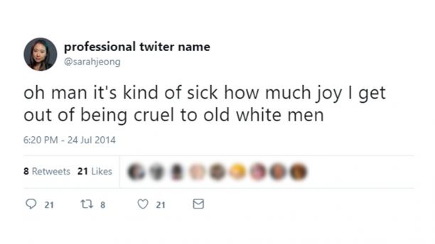 He’s talking about that bitch Sarah Jeong, of course.