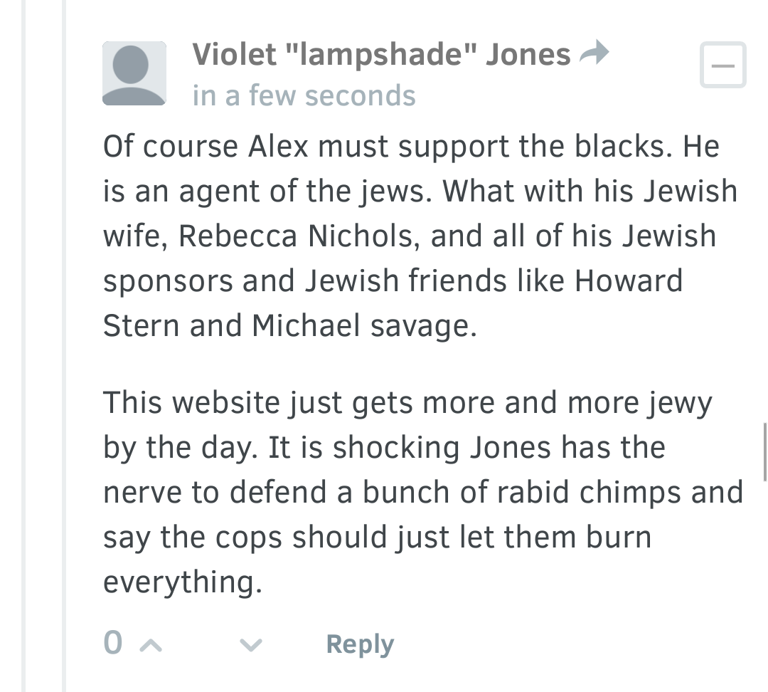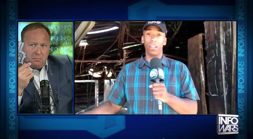 Jones is 100% behind the MSM and Eric Holder on the Ferguson situation, attacking evil White cops for oppressing the peaceful rioters. Unlimited trolling opportunity, as half the articles on the site are about this situation. He’s even sent several “reporters” to Ferguson to film the alleged oppression of the peace-driven violent Black looting rioters.