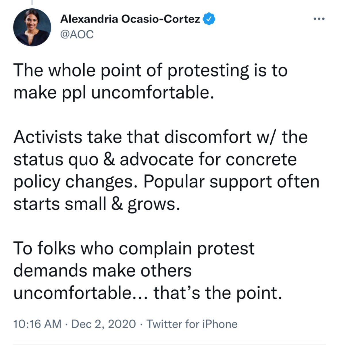 People also pointed to another tweet she made in 2020 talking about how protesters should make people uncomfortable.