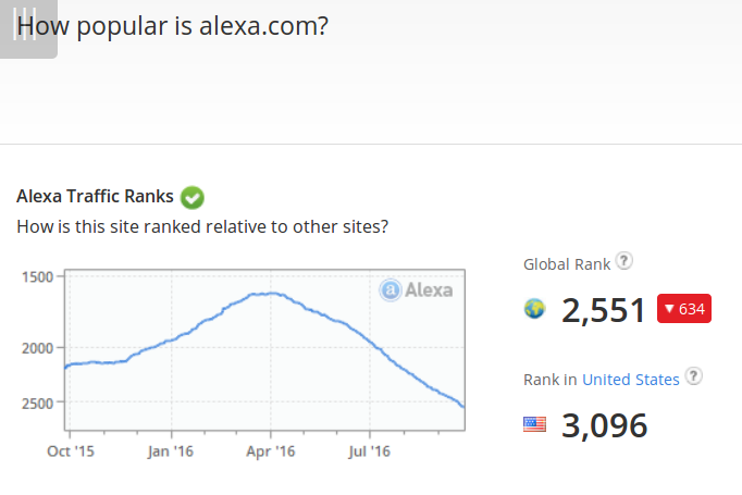 Alexa.com is a webpage-ranking site, which provides a number rank for most pages on the internet.