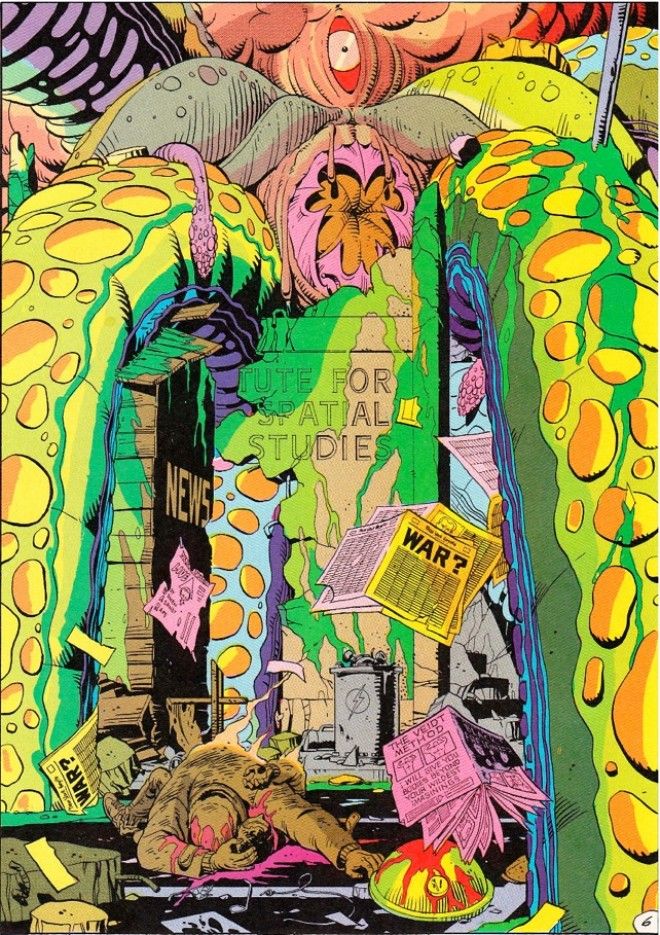 In October of 1987, the final issue of Alan Moore’s Watchmen was released, and featured a fake alien invasion being used by cynical control freaks as a justification for a global government. A gigantic fake squid alien is dumped on New York City, killing a bunch of people.