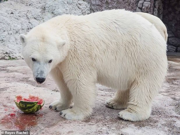 Head of Royev Ruchey zoo in Krasnoyarsk, Andrey Gorban, said: ‘At the very moment he mounted her, something went wrong.