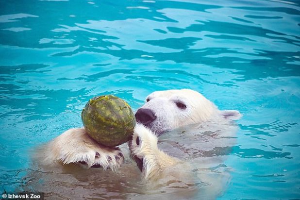 Pictured: Baloo playing with a watermelon.