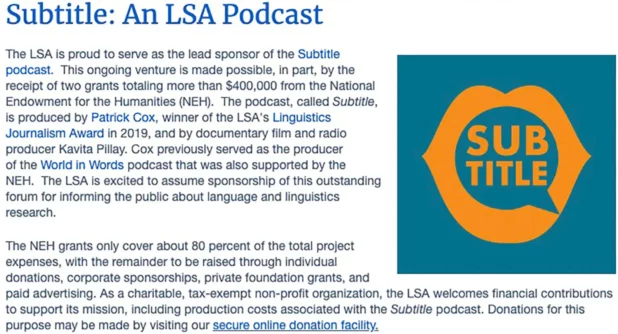 The National Endowment for the Humanities (NEH) and National Endowment for the Arts (NEA) were the primary funders of the audio content, covering topics related to history, art, literature, science, languages, and religion, among others.