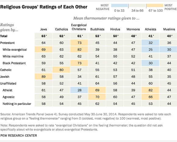 According to Pew Research, Evangelical support for Jews is very high. However the feeling is not mutual. While 69% of white evangelicals say they have a favorable view of Jews, only 34% of Jews say they have a favorable view of Evangelicals.