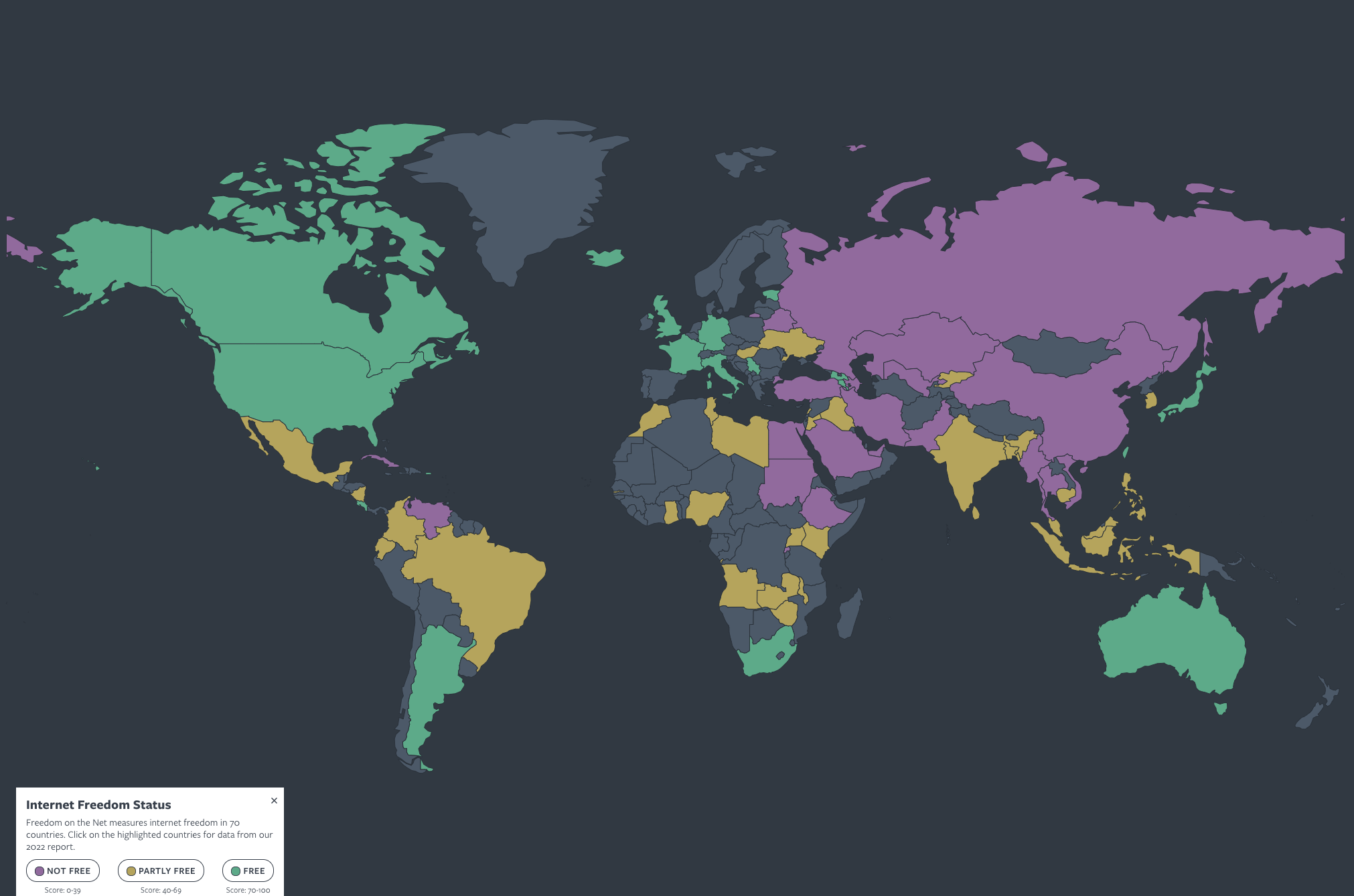 To add insult to injury, Freedom House has added a special “internet freedom” map, which claims that the United States has a free internet, while China and Russia do not.