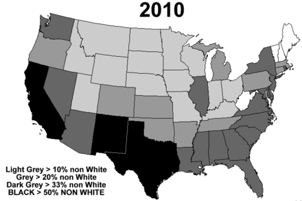 The reason there isn’t all that much difference is that they are measuring the largest ethnic group, and when you have people coming in from every country in the world at the same time, none of them is going to be dominant over whoever was there first (at least for a long time). On top of this, Illegal Latino immigrants are not included in the census. If they were, the entirety of Texas, Arizona, New Mexico and California would be majority Mexican.