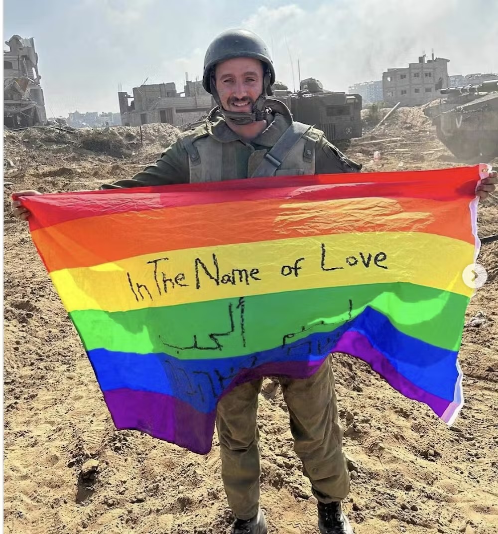 Since the start of the Gaza conflict, IDF soldiers have been flying the faggot flag and claiming that their goal in Gaza is to enforce gay rights.