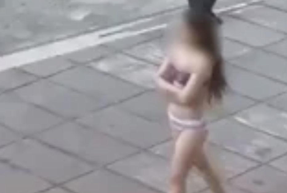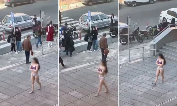 Videos posted to social media appear to show the woman removing her clothes and walking out on to the street in her underwear. A second video appears to show the woman being bundled into a car by men in plainclothes.
