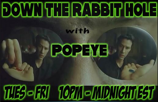 Popeye also does a radio show with the gay sounding name “Down The Rabbit Hole.” In addition, it seems as if he maintains a close working relationship with Aaron Dykes and Melissa Melton. Melton previously came on to his show claiming that there was a strange conspiracy to spike her drinks at a bar. I couldn’t get past the first ten minutes of the clip, but apparently she thinks there are people out to get her and Aaron for no specific reason. It seems as if selling unnecessary and unwarranted paranoia is a staple of this operation.