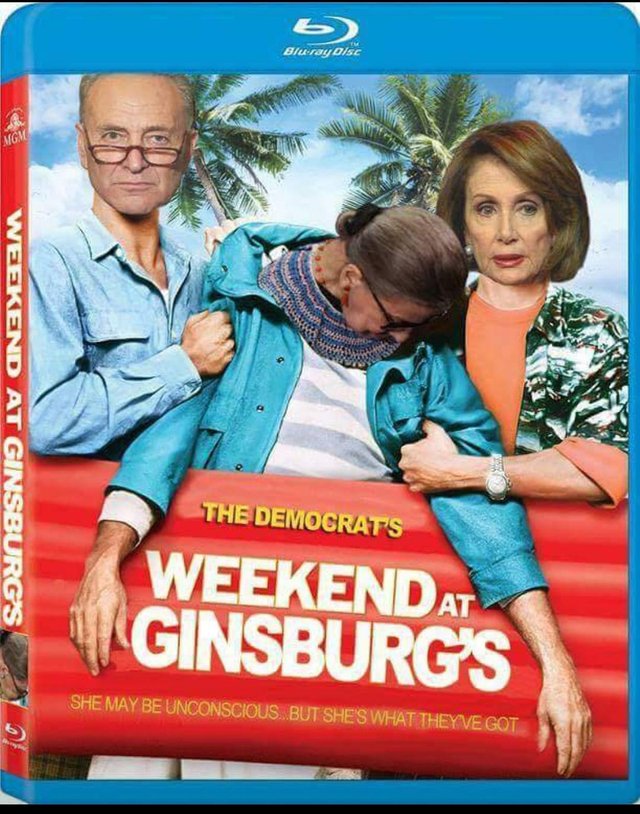 So until we get substantive proof that she is still alive, there will be people who believe that she is either dead or incapacitated. Some of those who believe that she is dead, think they’re actively trying to recruit a Ginsburg body double. And all of this is why we have these “Weekend at Ginsburg’s” memes.