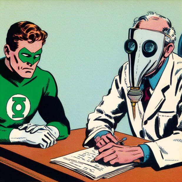 I really spent a lot of time on that Green Lantern doctor’s visit render. Sometimes I end up with 5 different renders I want to post, but part of my job is picking the best of the best. Every time, I look at the ones that don’t get used, left there on the cutting room floor, and I say “this is the hardest part of my job.”