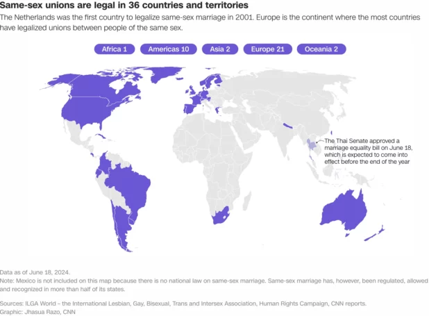 More than 30 jurisdictions worldwide now recognize same-sex marriage, according to the Pew Research Center. Since the first same-sex marriage law was passed in the Netherlands in 2001, progress has been made mostly in Europe, the Americas and Australasia.