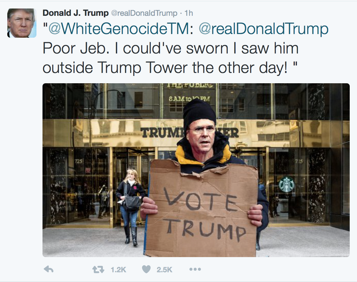 CLAY: ONE OF MY CONCERNS IS CERTAIN PUBLIC FEGS ARE PROMOTING THESE GROUPS EVEN FURTHER, AND ONE OF OUR MOST VOCAL CANDIDATES FOR PRESIDENT RETWEETED RETWEETED @WHITEGENOCIDETM. THREE WEEKS LATER, HE DID IT AGAIN. TWO DAYS AFTER THAT, HE RETWEETED A DIFFERENT USER WHOSE IMAGE ALSO INCLUDED THE TERM WHITE GENOCIDE, AND THAT’S NOT EVEN ALL OF THEM. DIRECTOR COMEY, DON’T THESE ACTIONS MAKE IT EASIER FOR THESE RACIST GROUPS TO RECRUIT EVEN MORE SUPPORTERS?
