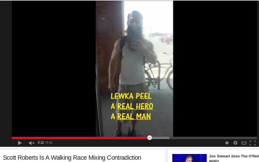 Can you imagine adding the words “a real hero” to a picture of yourself? If you did that, would you have the nerve to underline it for emphasis? The above screenshot is from a video he made against Scott Roberts after Scott Roberts went on a Talkshoe call with him. Roberts had said he had a lot of respect for him before he began attacking him for being a racist with Asian children.