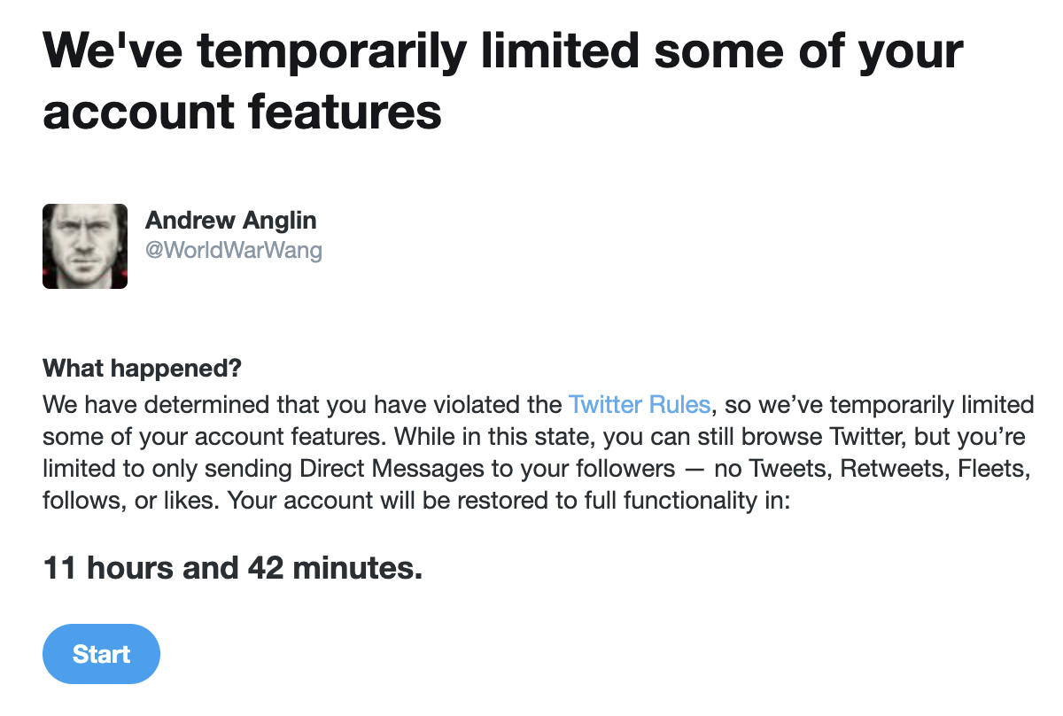 Frankly, there needs to be some kind of punishment for filing false reports. If that’s what’s going on here, it is the most clear-cut case ever, because no one has ever in history tweeted as carefully as I was tweeting.