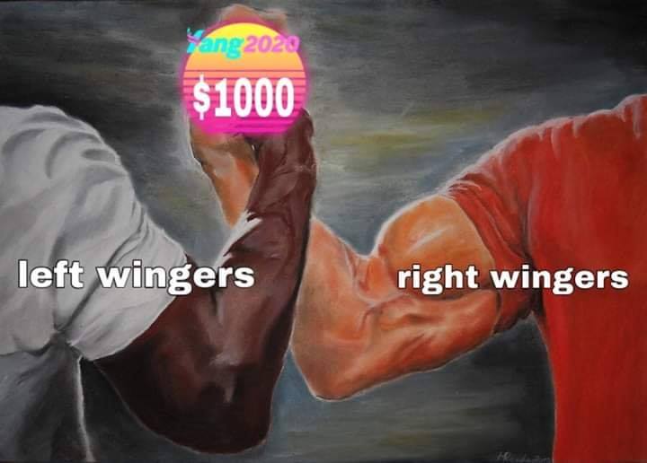 And what are his political opponents going to do during the debates? All he has to say is that he’s the only candidate in the field who wants to give everybody $1,000 a month in free money. This marks instant defeat for his opposition because they do not want to give everybody $1,000 a month in free money.